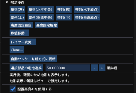 部品を移動したときに行う配置高度AIをON/OFFします。