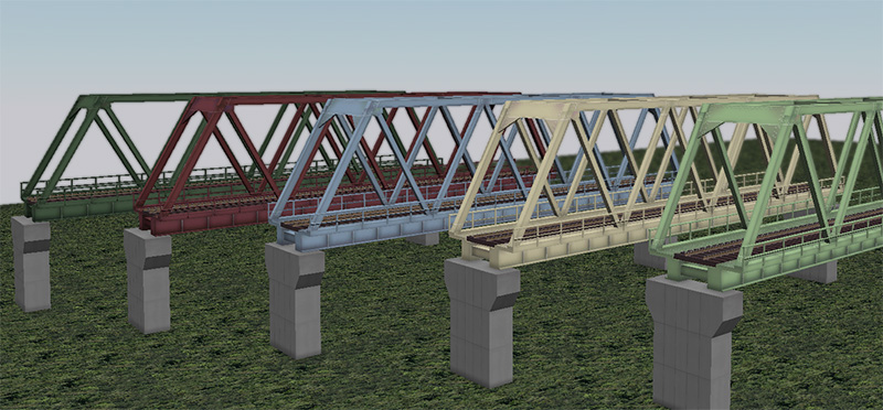 トラス鉄橋のフレーム構造にあわせて架線柱部品を配置します。